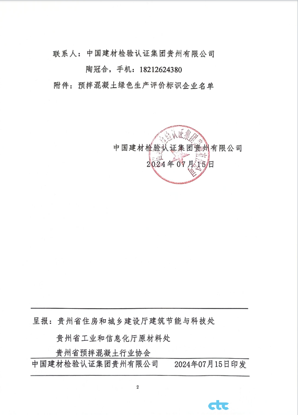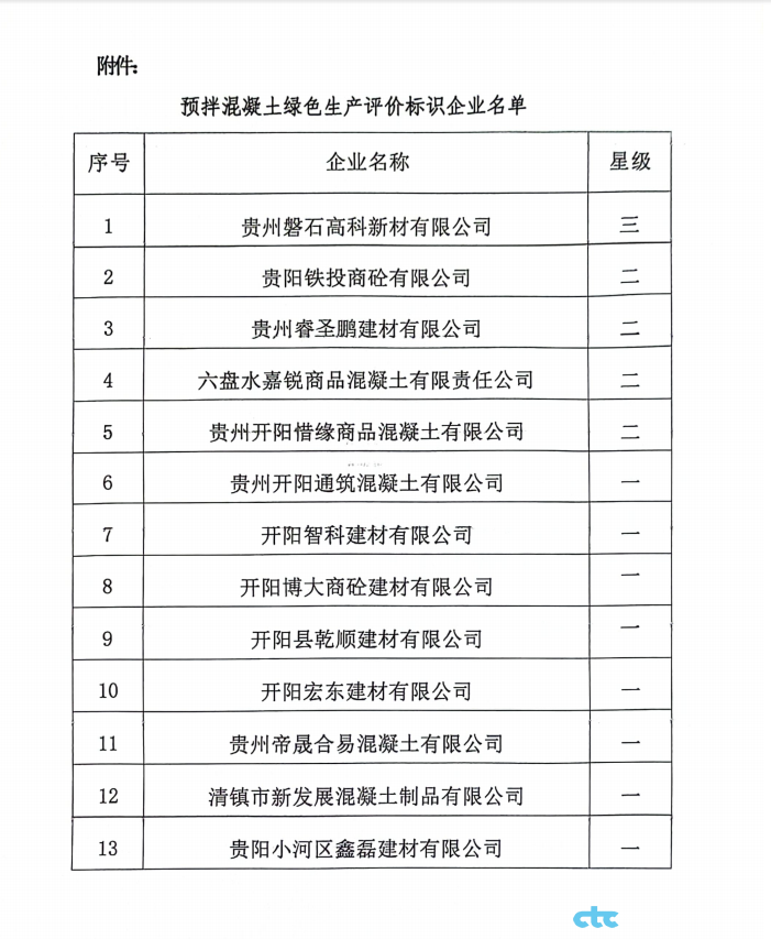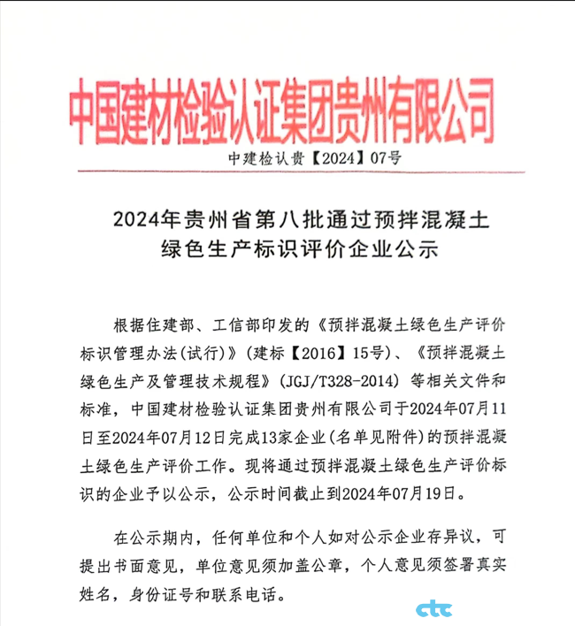 2024年貴州省第八批通過預拌混凝土綠色生產標識評價企業公示