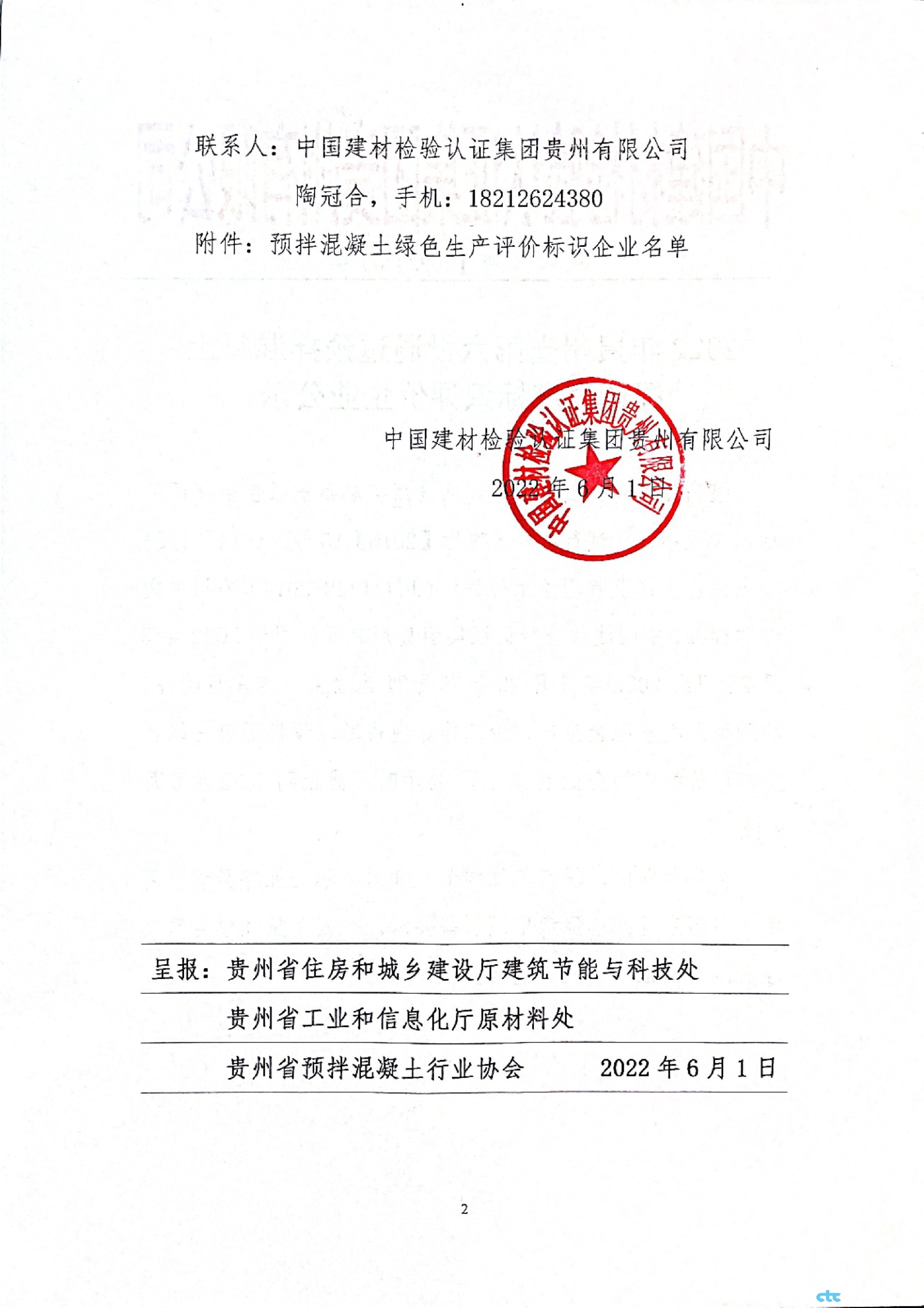 2022年貴州省第六批通過預(yù)拌混凝土綠色生產(chǎn)標(biāo)識(shí)評(píng)價(jià)企業(yè)公示